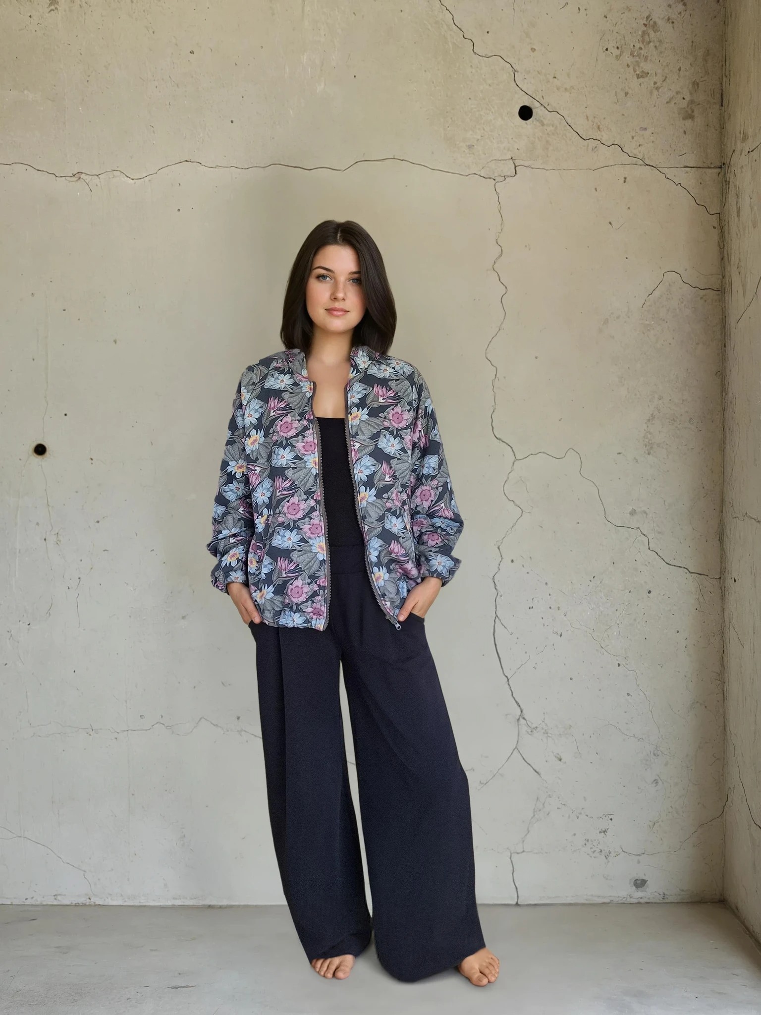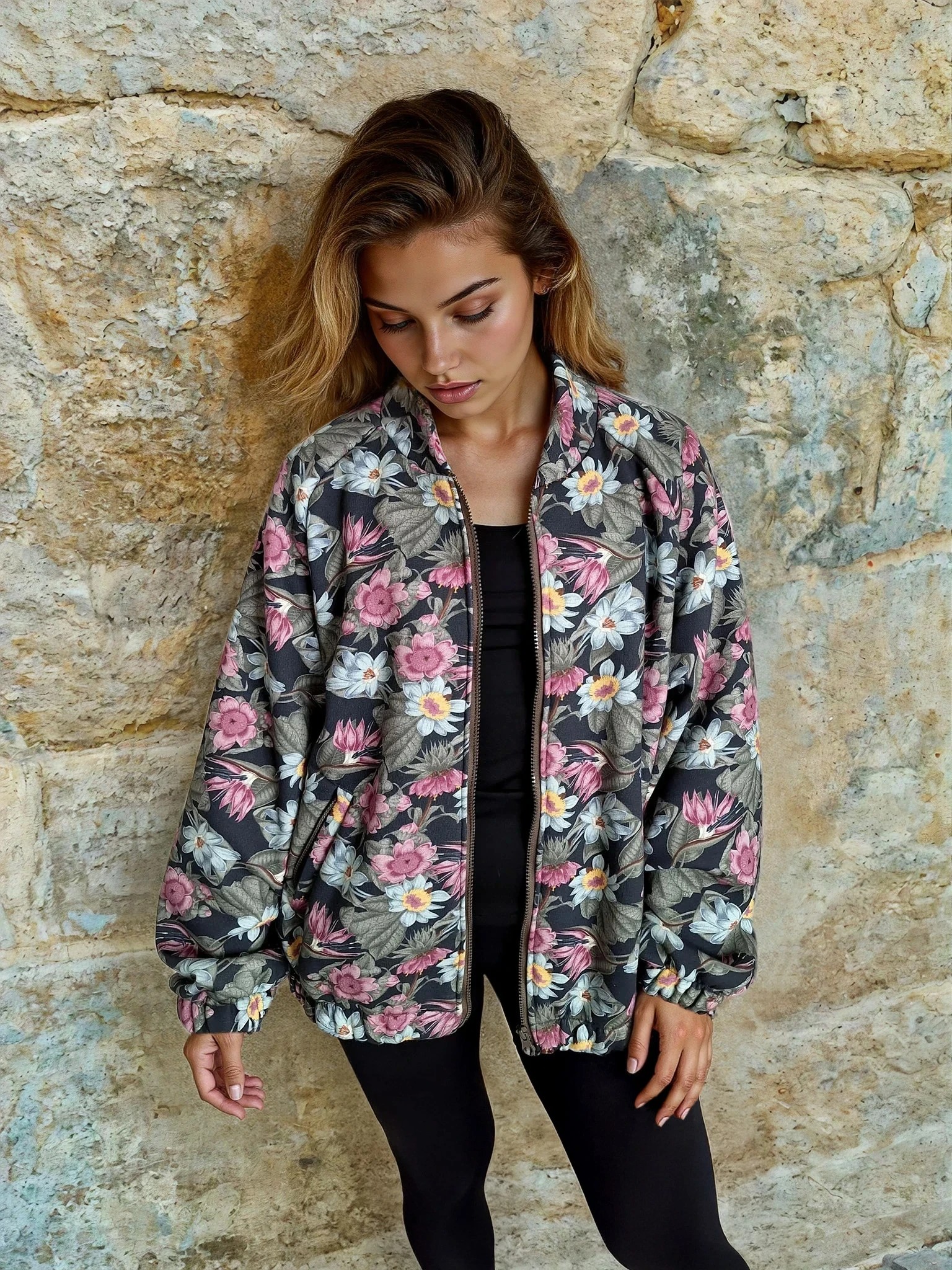 Step into everyday comfort with our oversized bomber jacket BLOOM – a floral-inspired piece created for slow moments, soft movement, and everyday beauty.